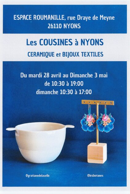 Gratiane, céramiste et Zanatana, créatrice de bijoux et accessoires textiles, sont 2 artisanes-créatrices originaires de la Drôme. Elles vous présenteront leur travail et leurs collaborations : une alliance inattendue entre terre et textile.